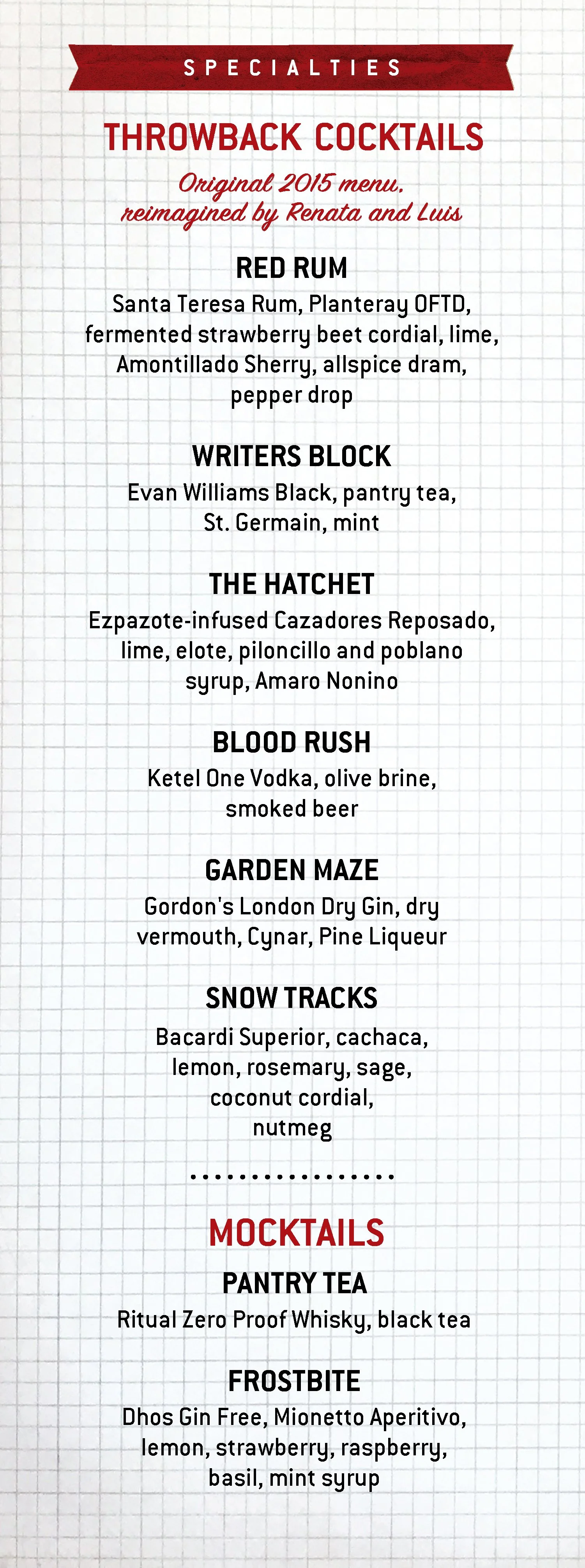 2015 Throwback Menu